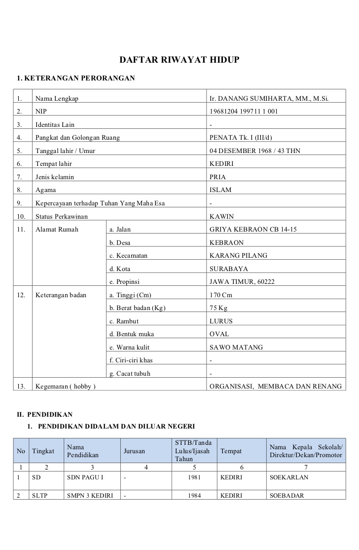 Untuk Anda yang ingin mendaftar sebagai PNS, tentunya harus mengikuti dulu tes CPNS yang sudah ditentukan oleh dinas. Nah lowongan kerja CPNS terbaru tentunya memiliki beberapa persyaratan yang harus di penuhi, antara lain adalah arsip lamaran kerja yang harus dipersiapkan. Untuk Anda yang membutuhkan contoh daftra riwayat hidup untuk CPNS, kami disini memiliki beberapa contoh daftar riwayat hidup PNS yang bisa Anda jadikan sebagai referensi. Silahkan download contoh daftar riwayat hidup PNS berikut ini: